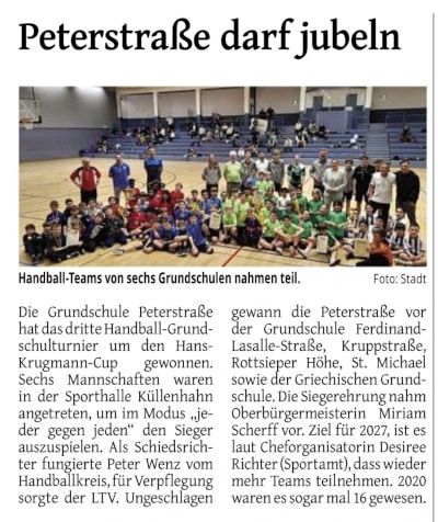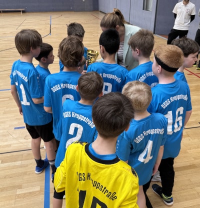 Einen hervorragenden 3. Platz belegte das Handball-Team der Grundschule Kruppstraße beim diesjährigen Hansel-Krugmann-Cup, dem Turnier für Grundschulmannschaften. Sechs Mannschaften traten an und so musste jeder gegen jeden spielen.