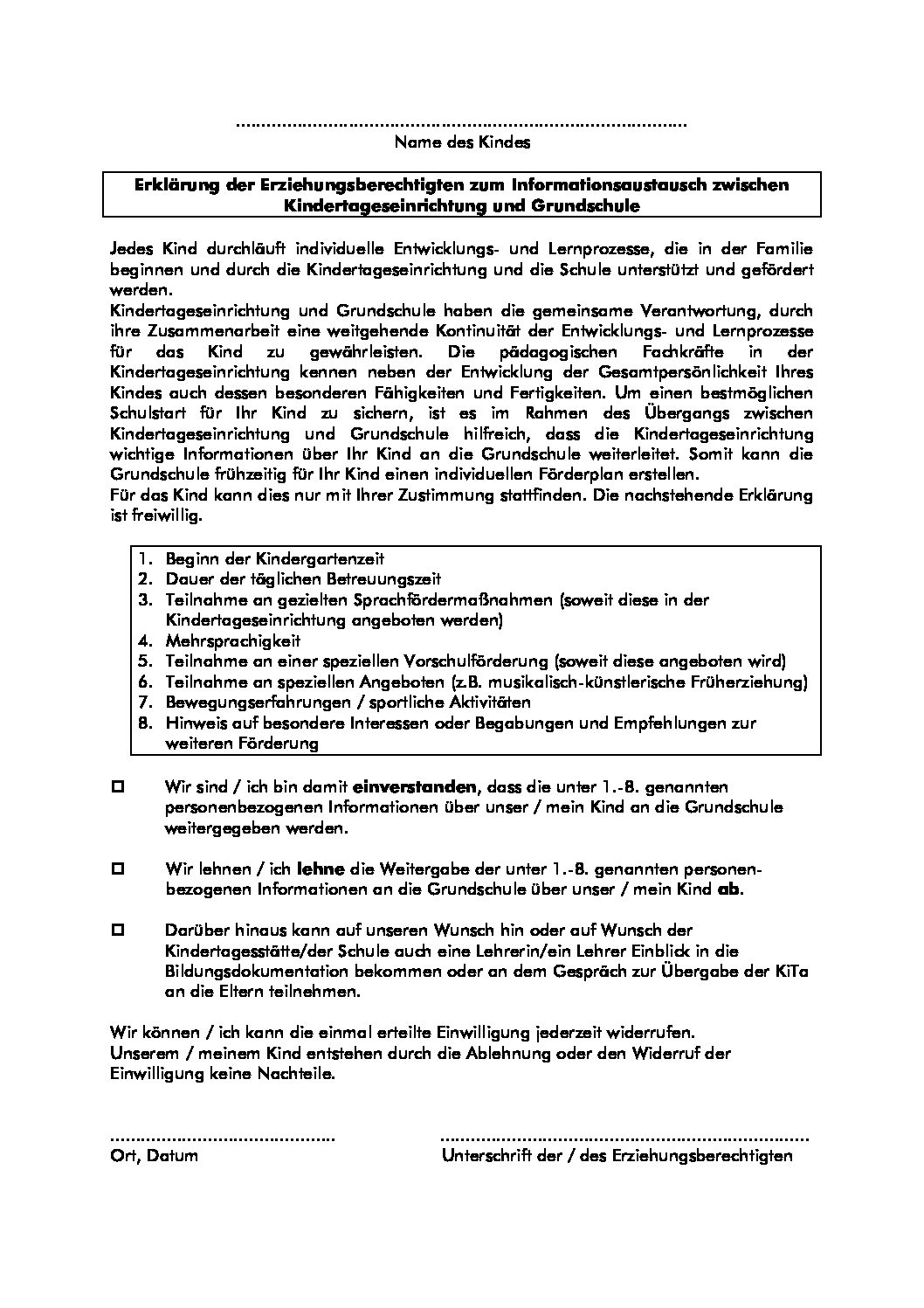 Entbindung Schweigepflicht KiGA