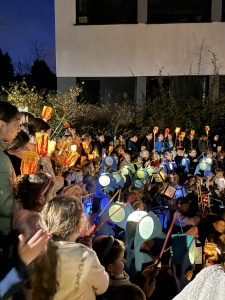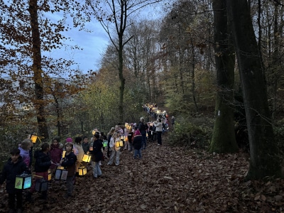 Am 06. November 2025 fand mal wieder das traditionelle Masrtinsfest an der Grundschule Kruppstraße statt. Es war mal wieder ein Abend voller Lichterathmosphäre und gemeinsamen Singens. Die Kinder präsentierten ihre Laternen beim Martinszug durch den angrenzenden Wald und im Steinkreis. Höhepunkt war das stimmungsvolle Singen des Liedes „Lichterkinder“. Selbst der Mond war am Ende begeistert und zeigte sich über dem Schulhof.